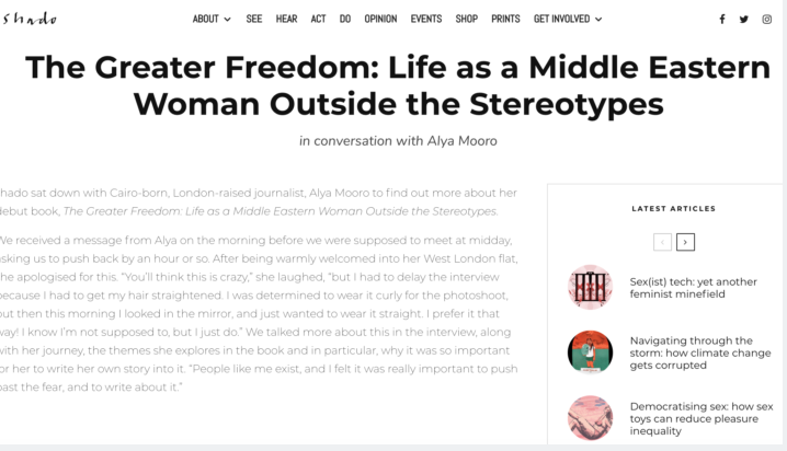 Egyptian-born and London-raised, Alya Mooro grew up between two cultures and felt a pull from both. Where could she turn for advice and inspiration when it seemed there was nobody else like her? Today, Mooro is determined to explore and explode the myth that she must identify either as ‘Western’ or as one of almost 400 million other ‘Arabs’ across the Middle East.